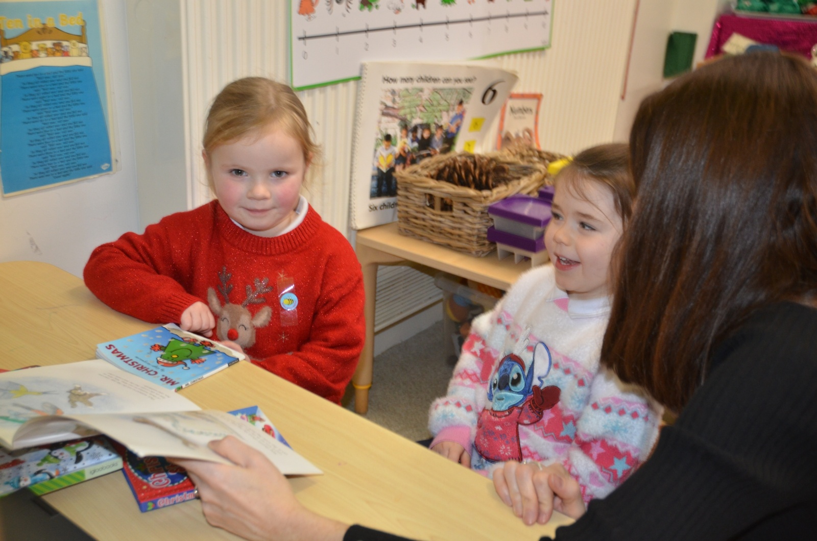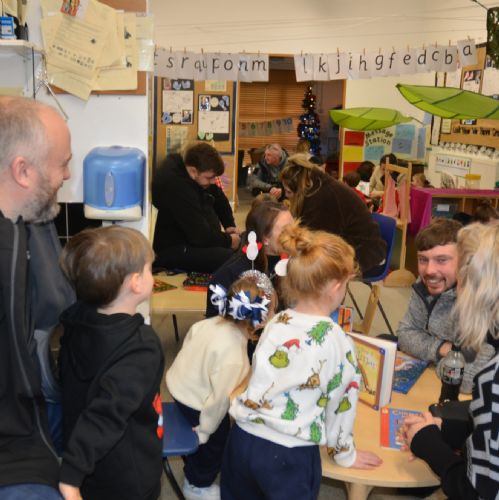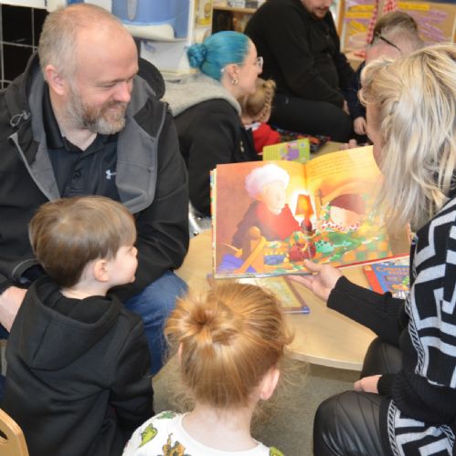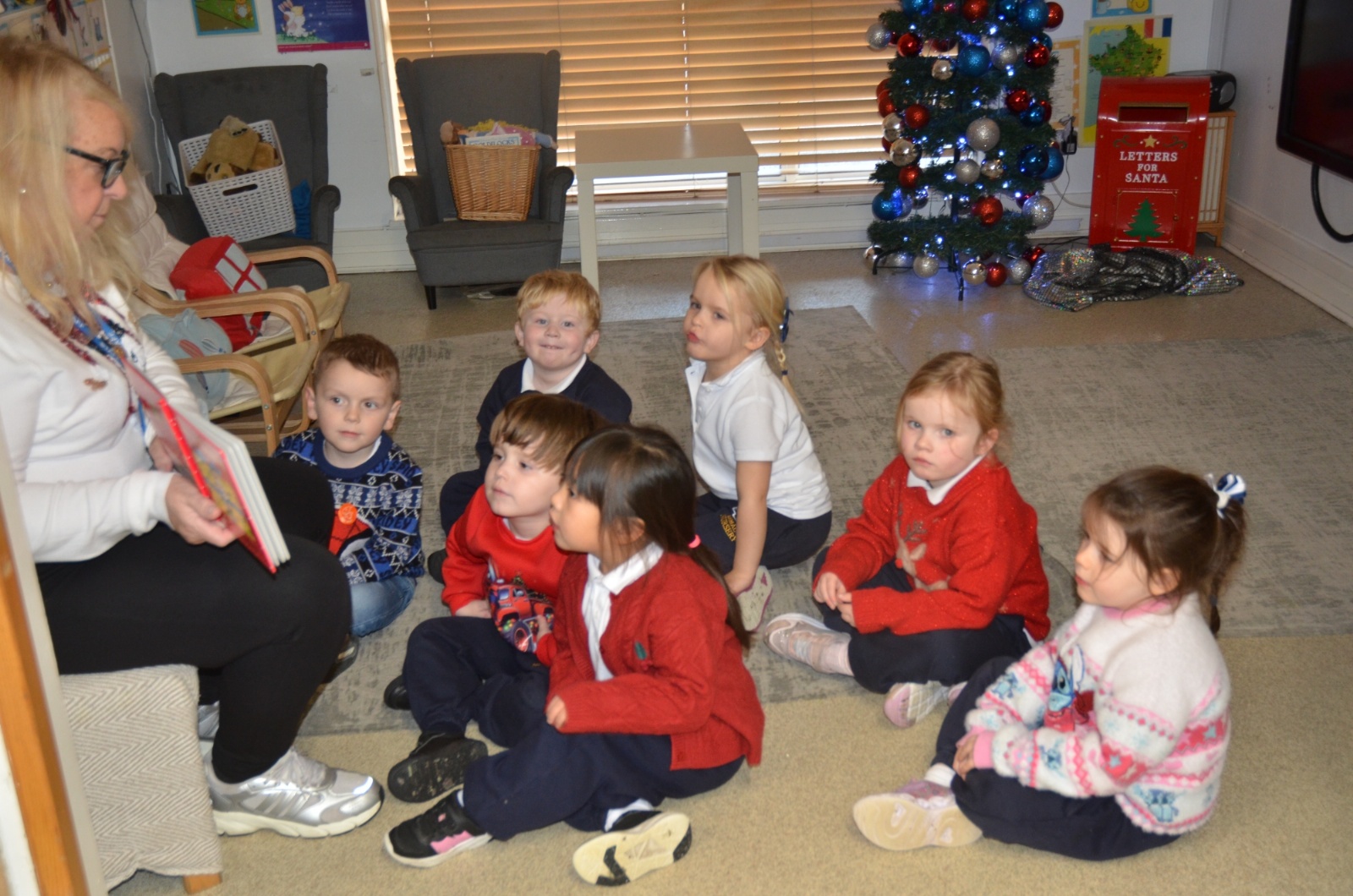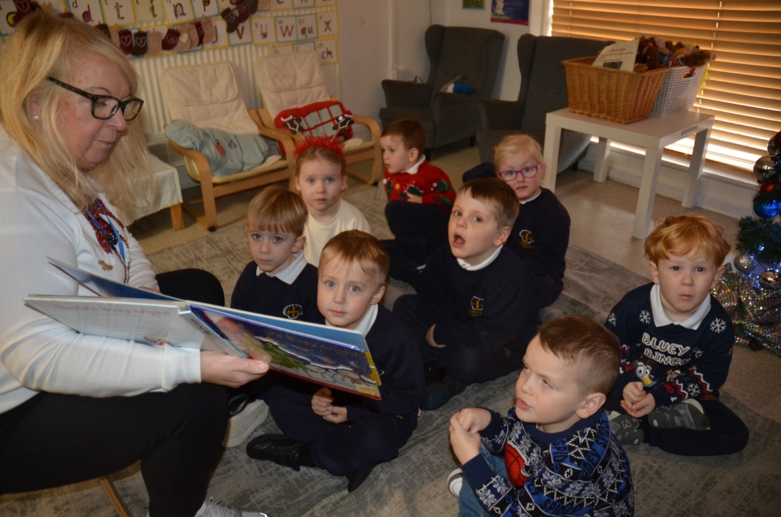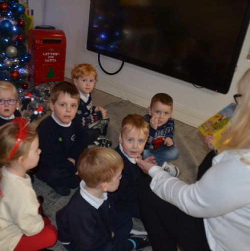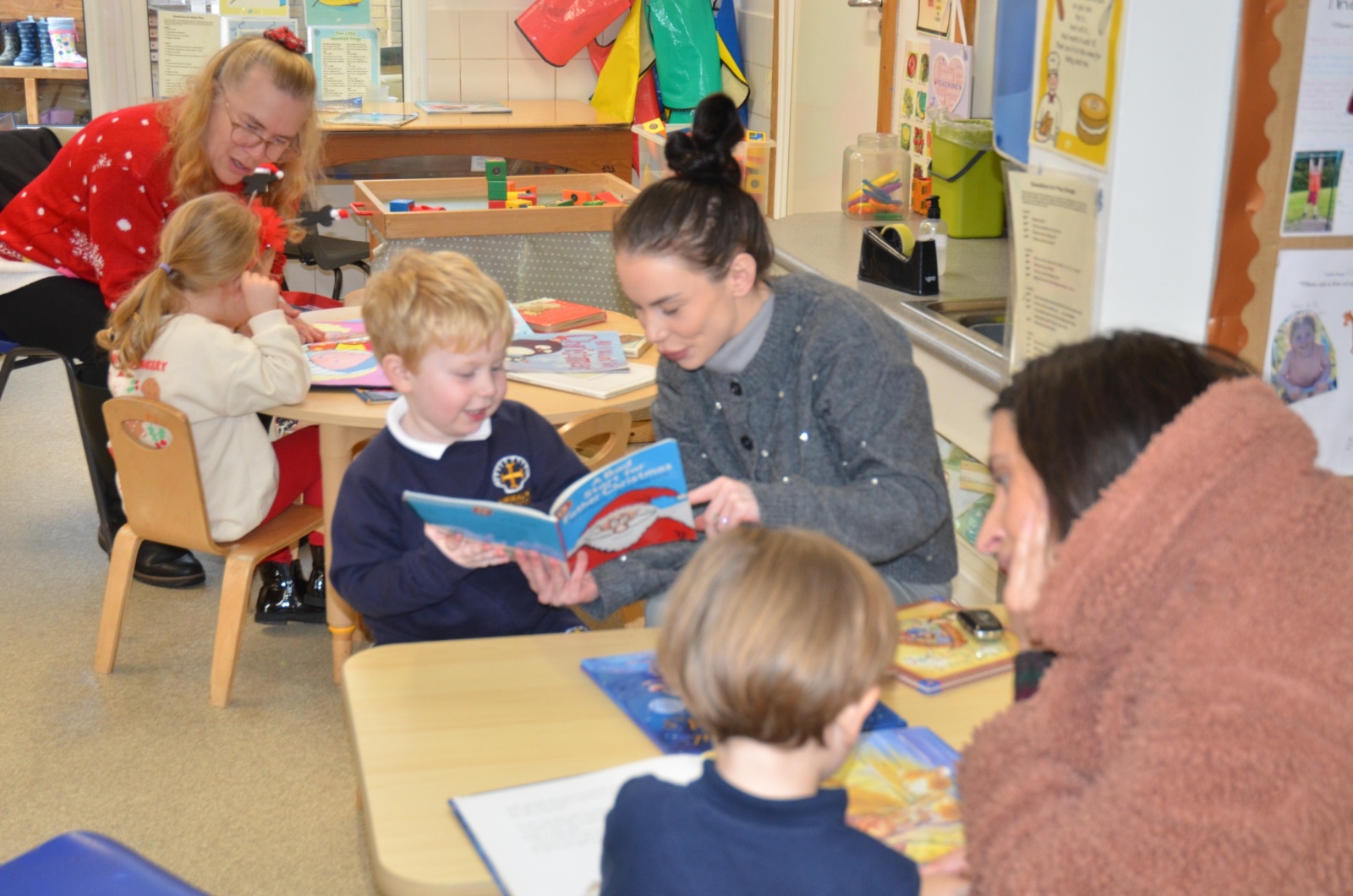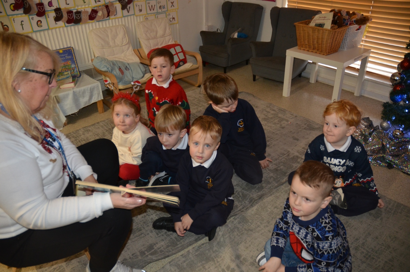 We wore our Christmas jumpers to Nursery and our families came to share Christmas stories with us.