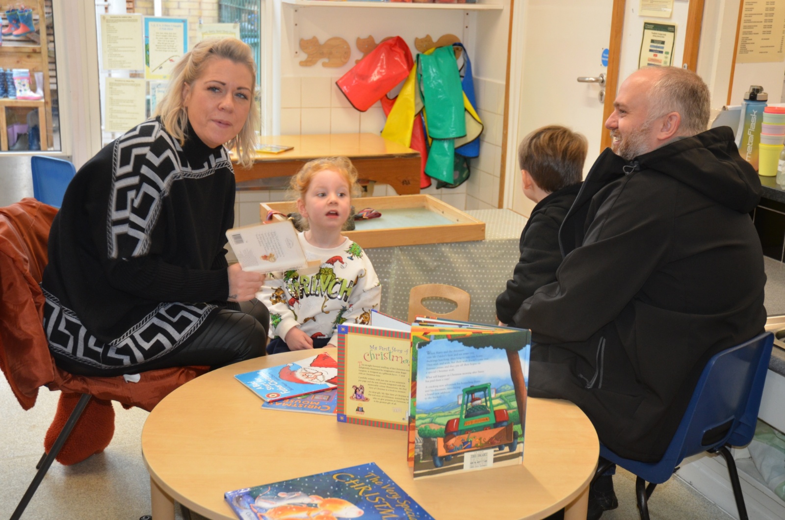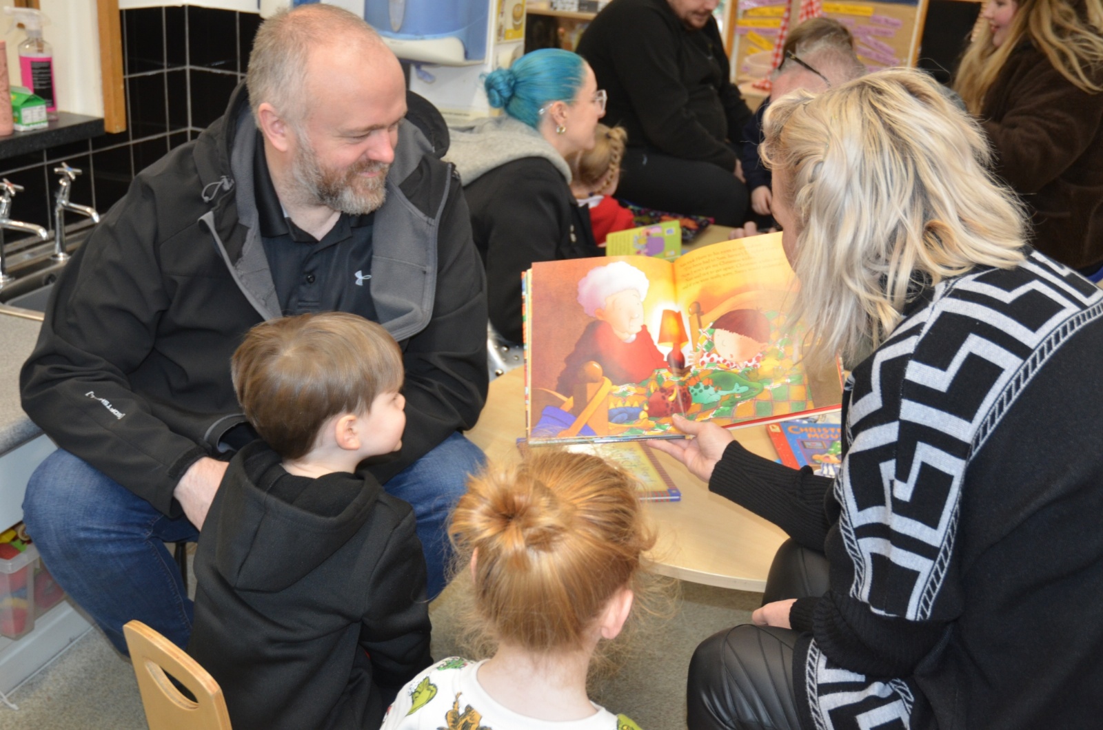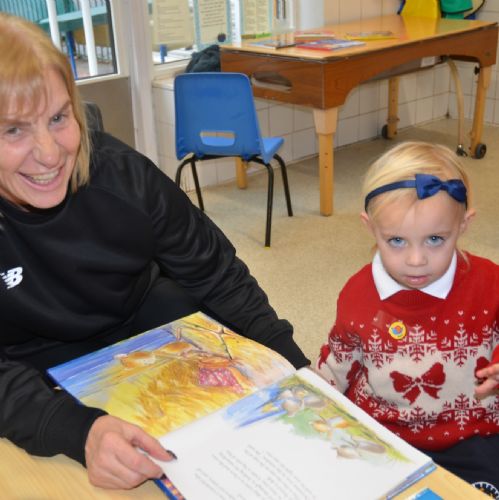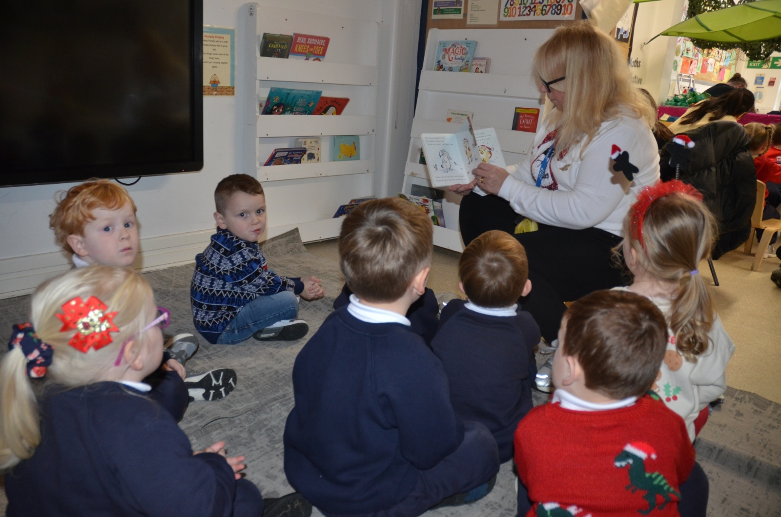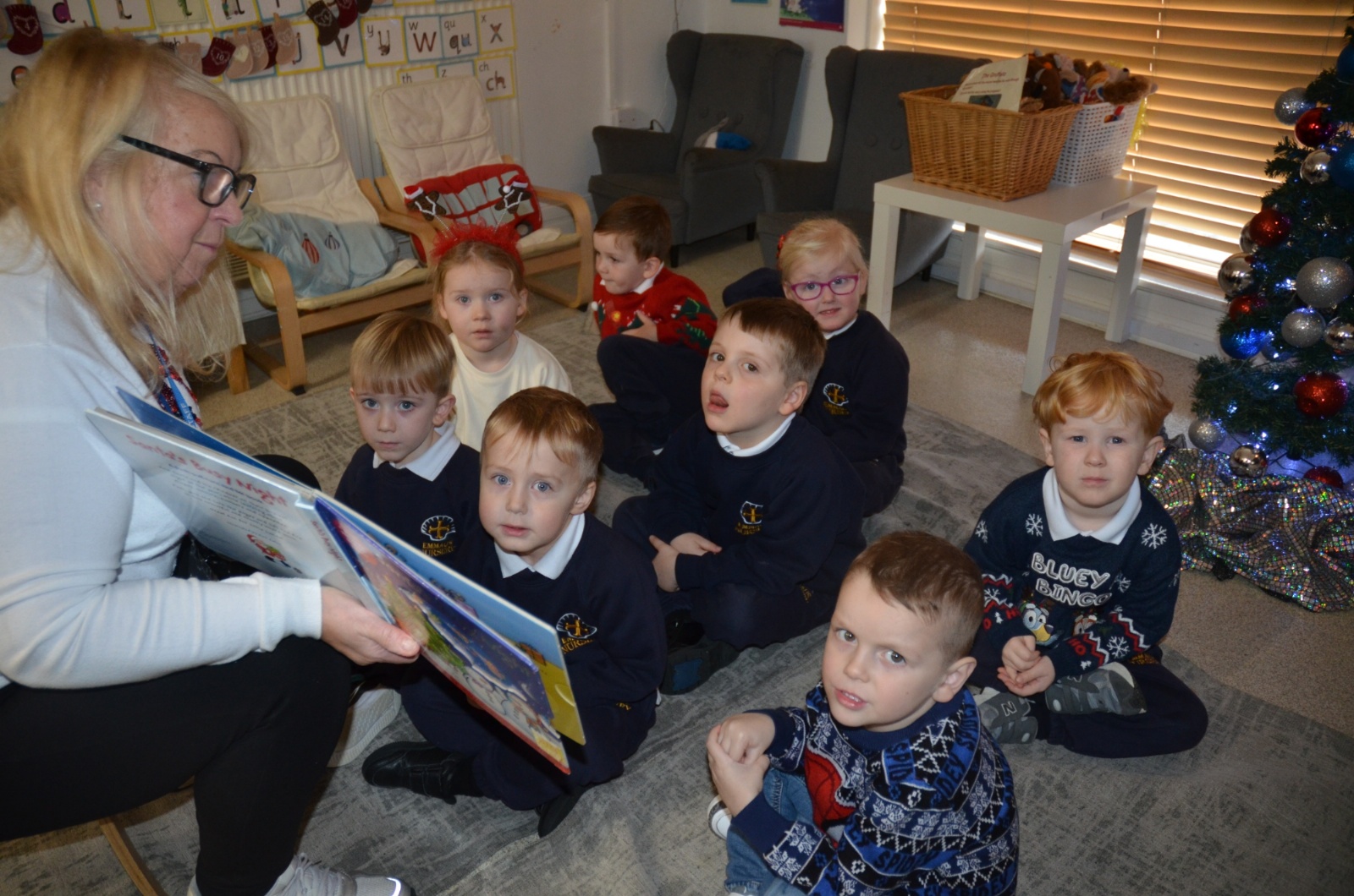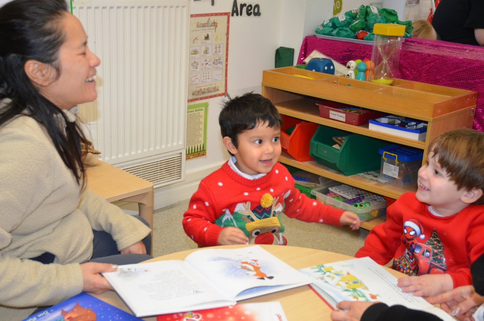 We wore our Christmas jumpers to Nursery and our families came to share Christmas stories with us.