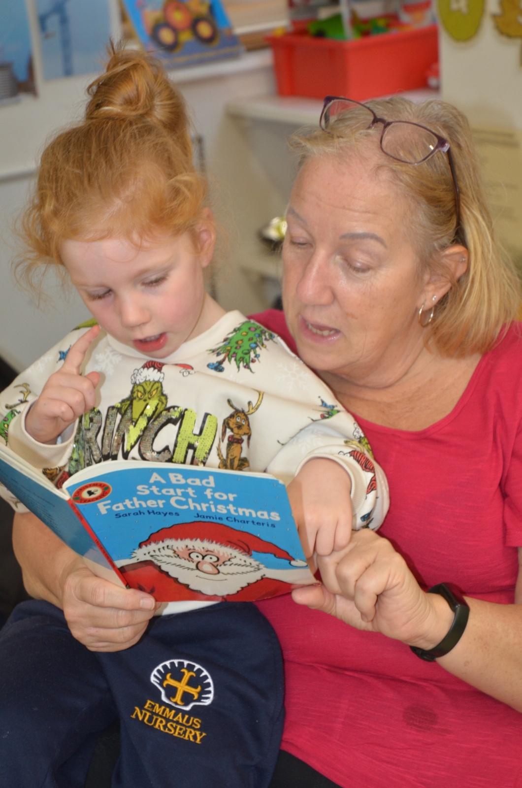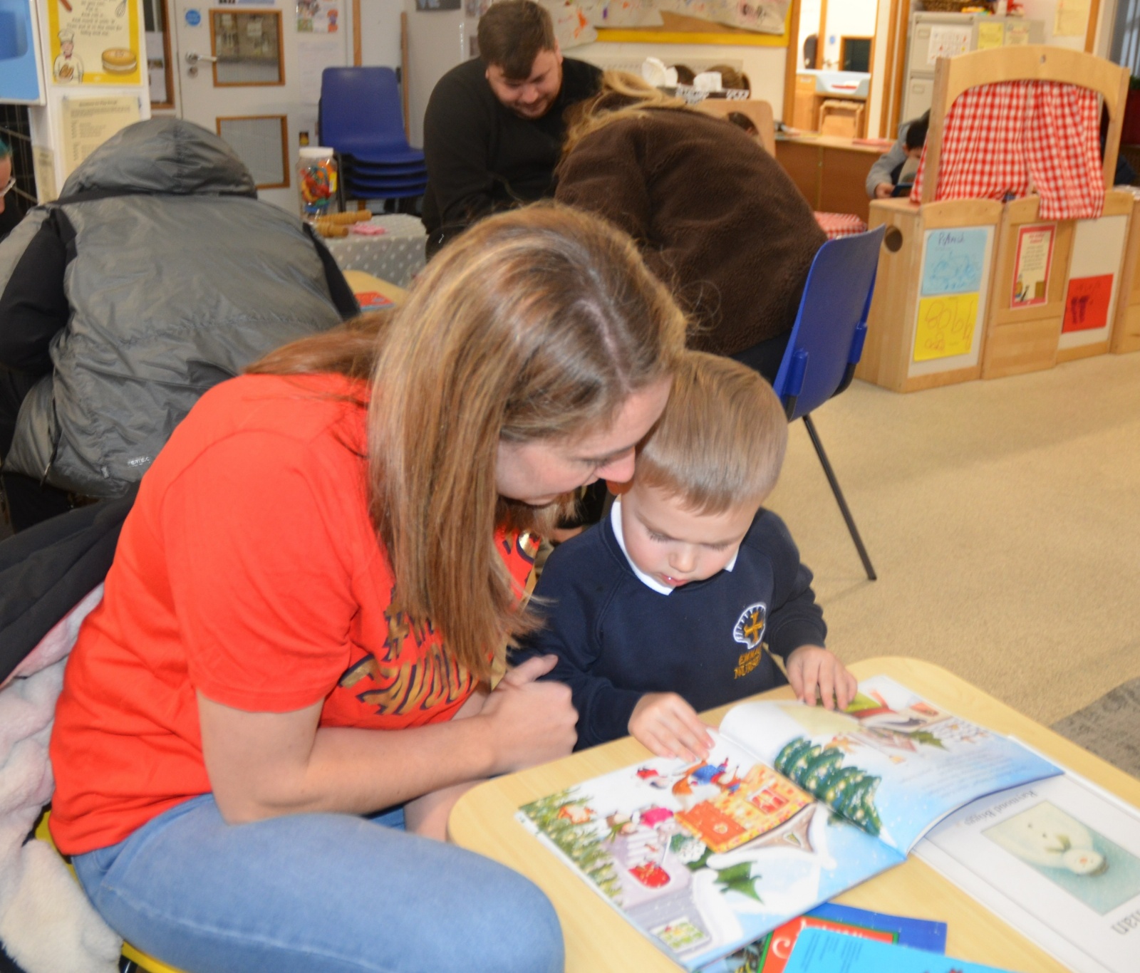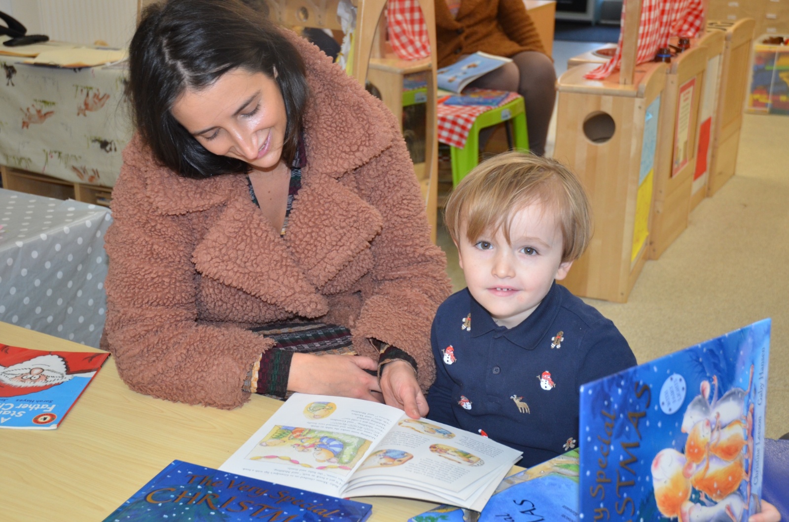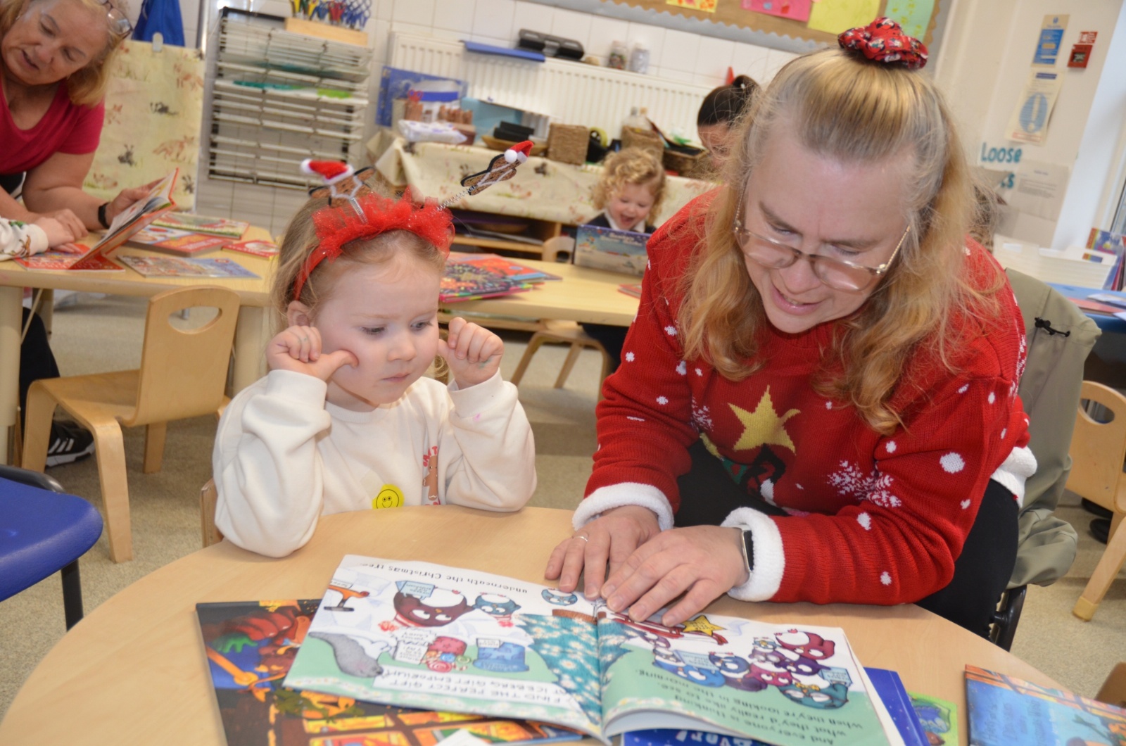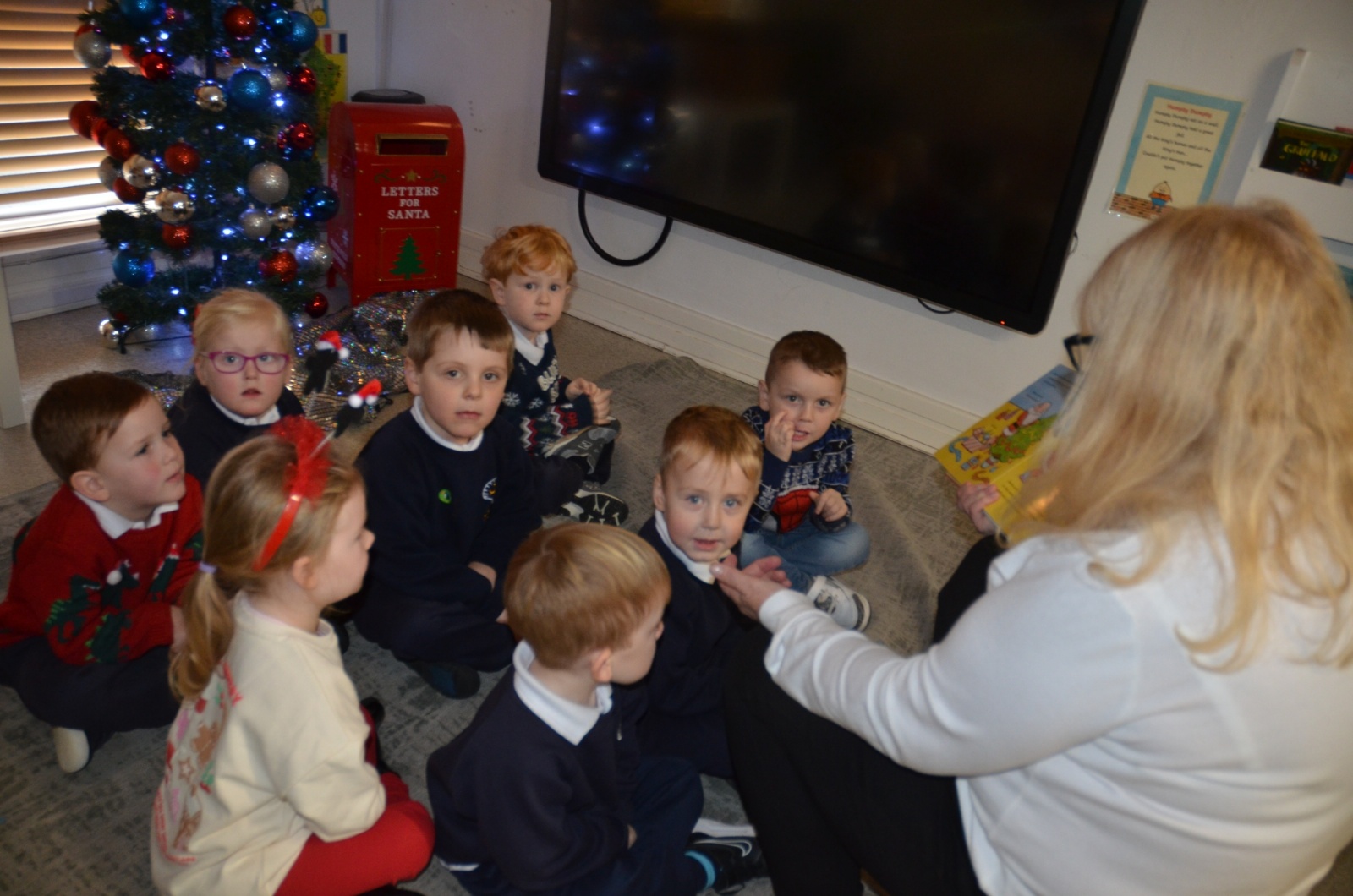 We wore our Christmas jumpers to Nursery and our families came to share Christmas stories with us.