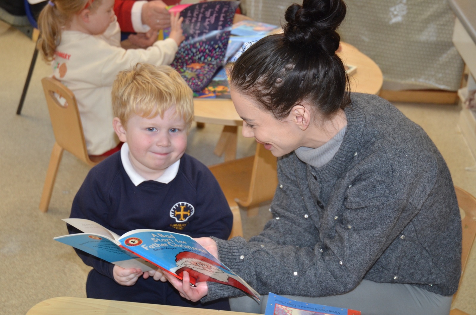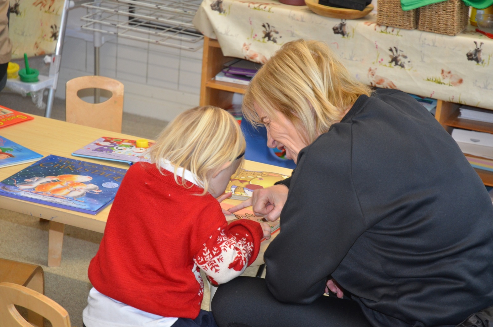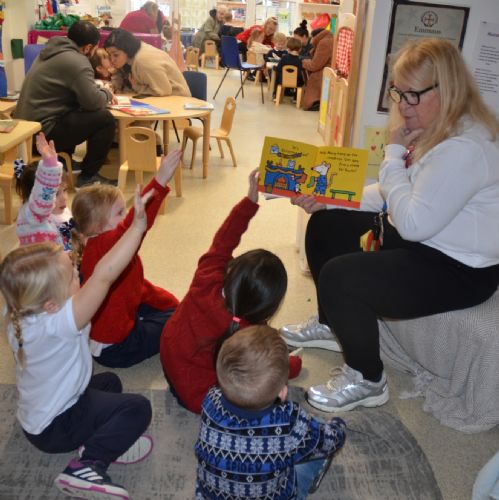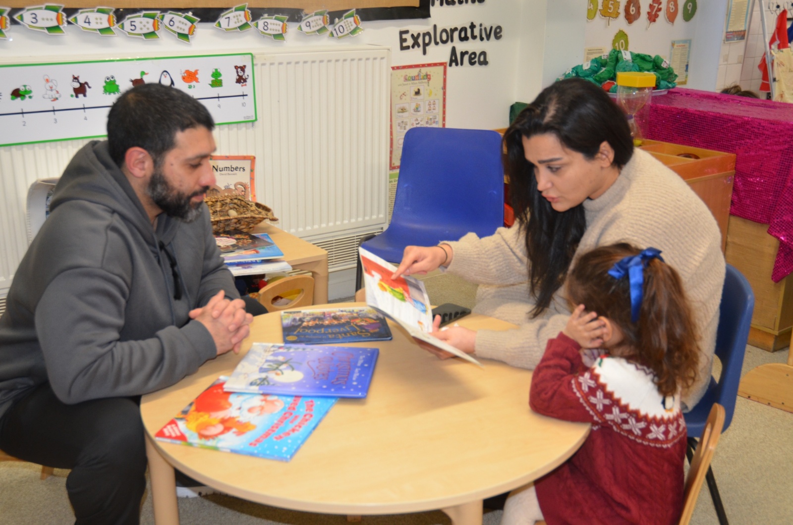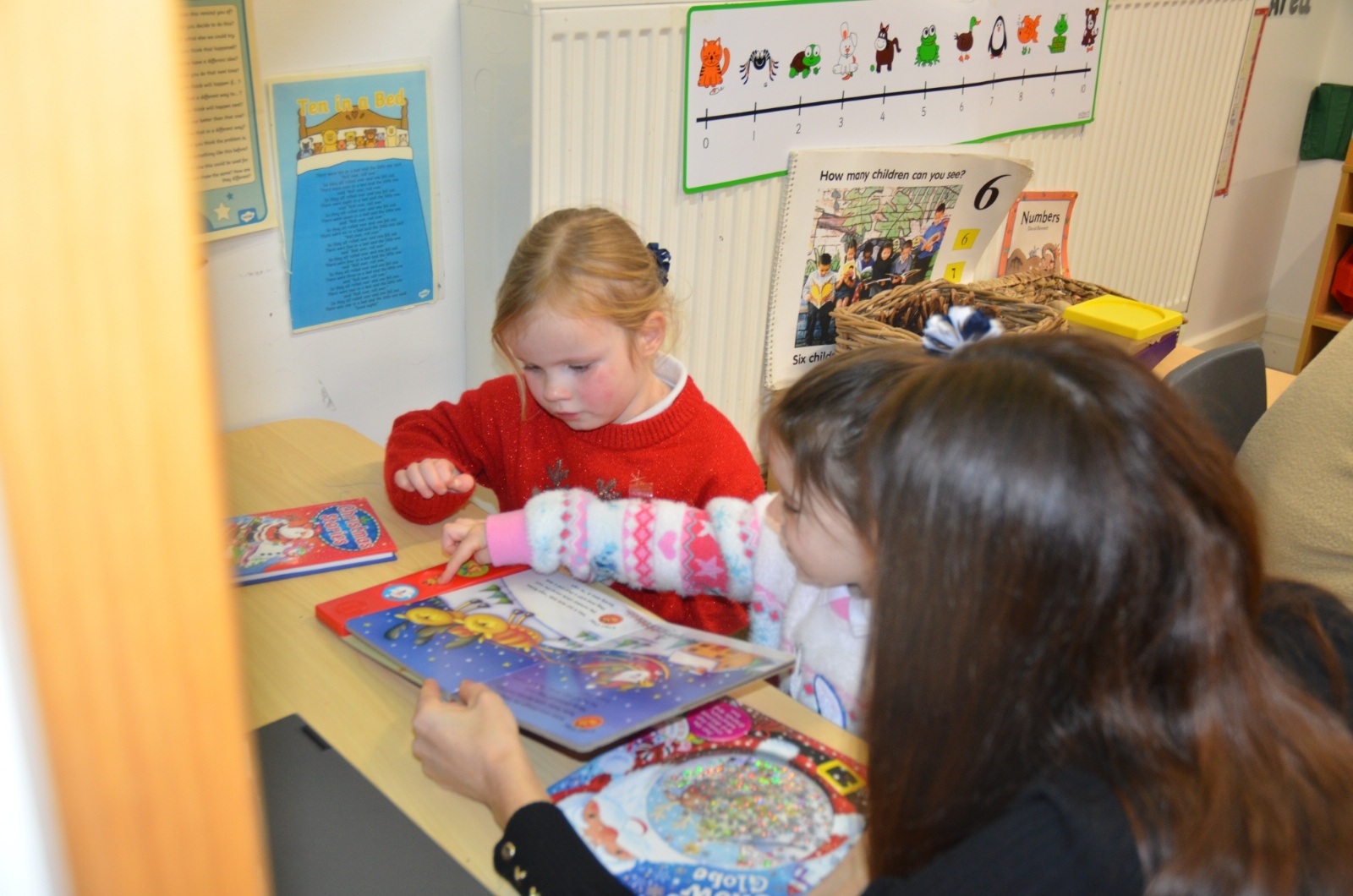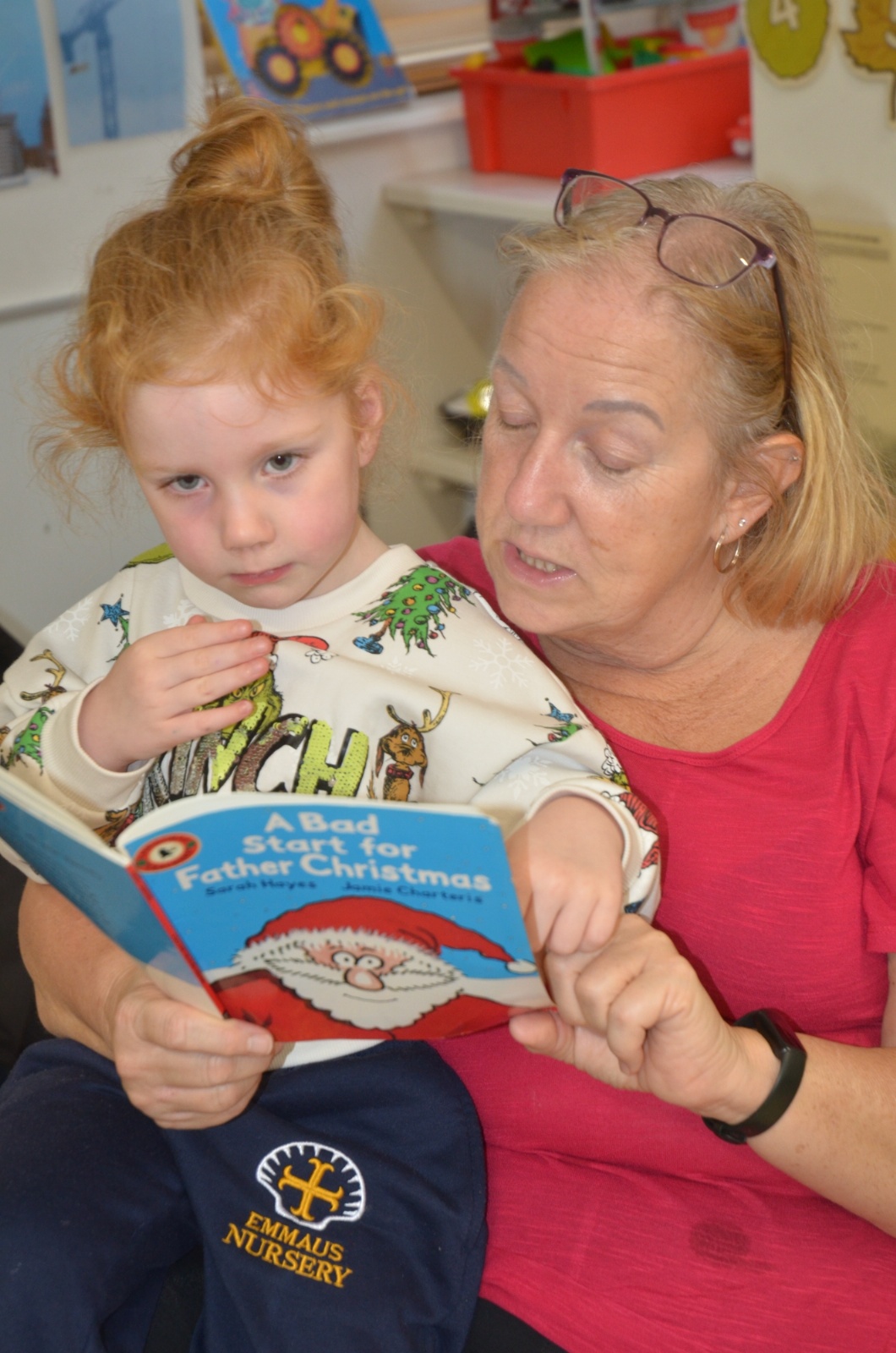 We wore our Christmas jumpers to Nursery and our families came to share Christmas stories with us.
