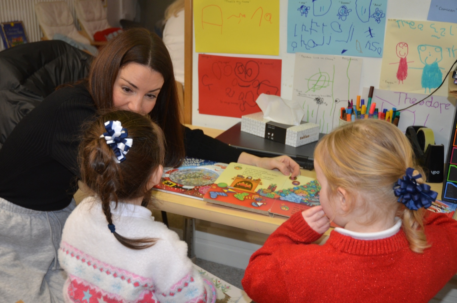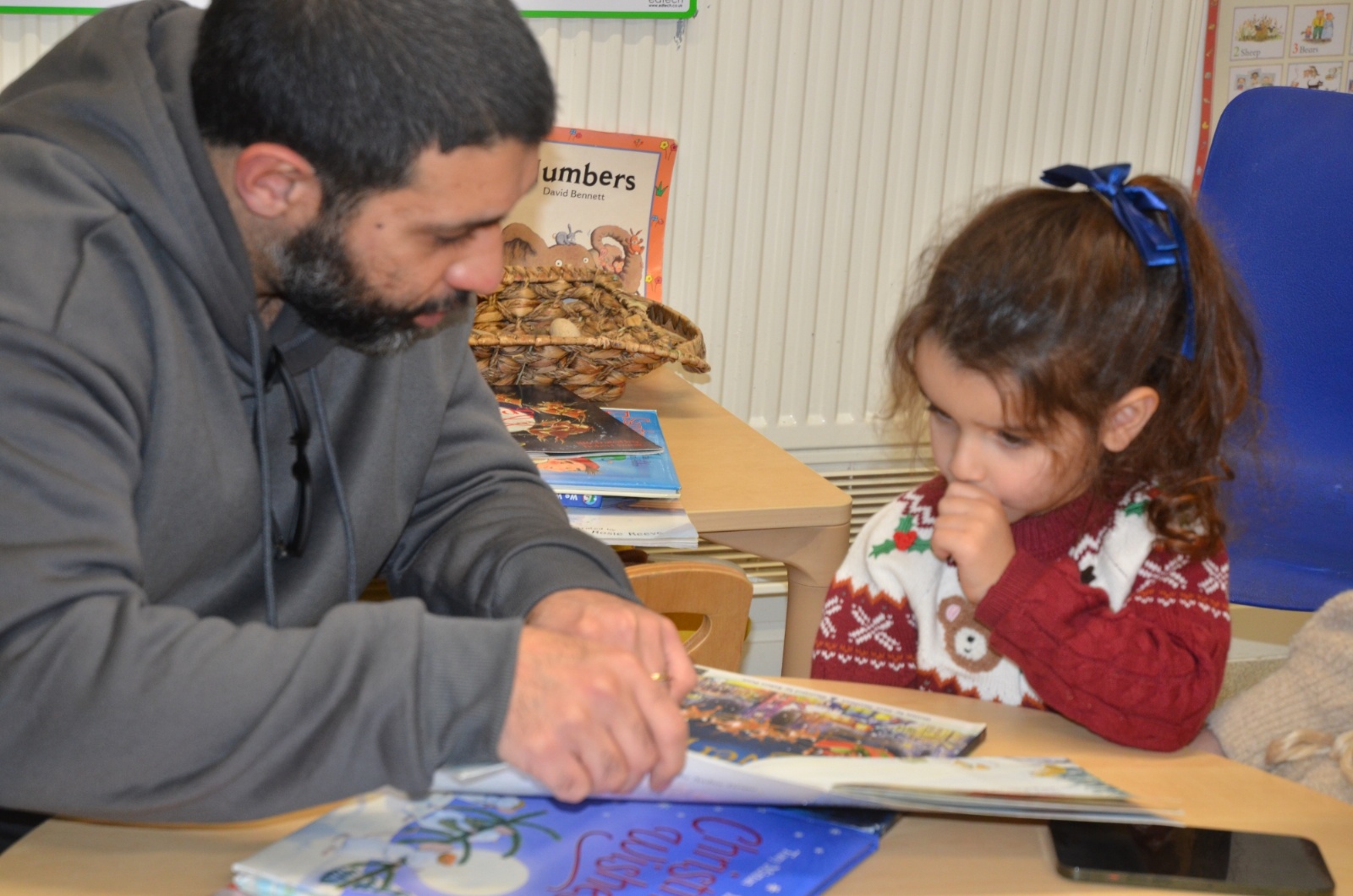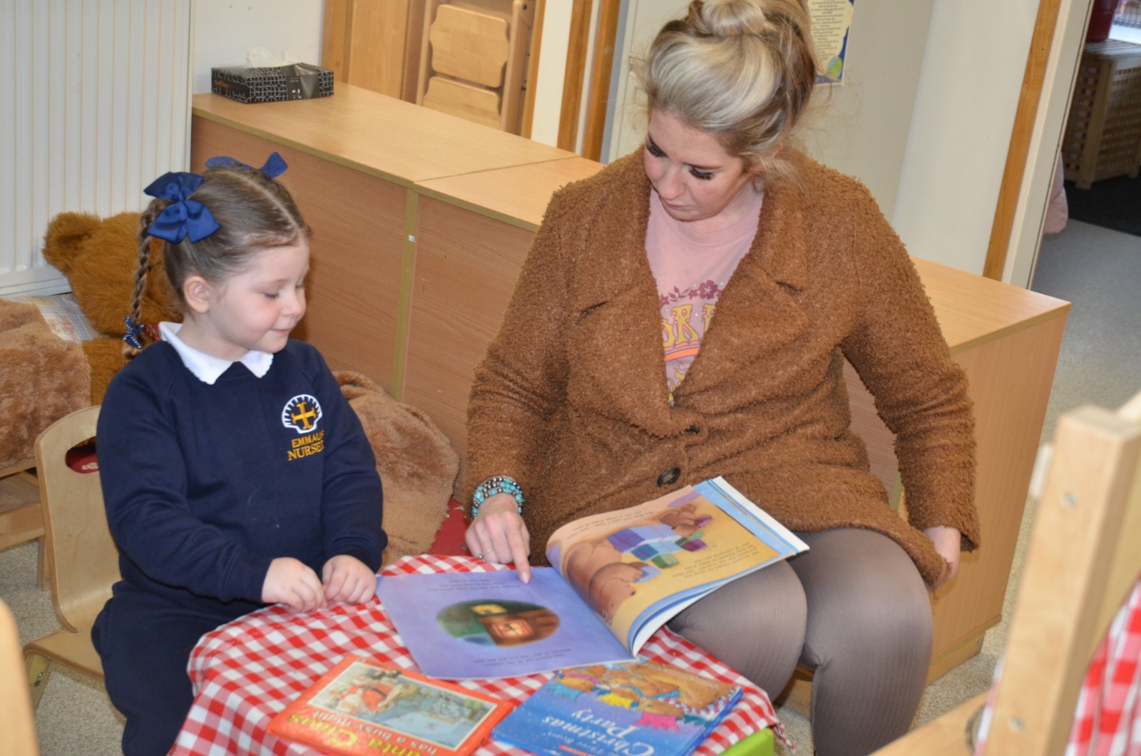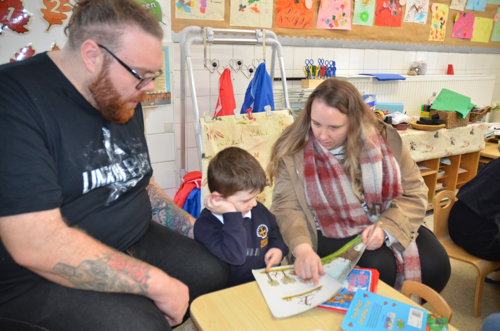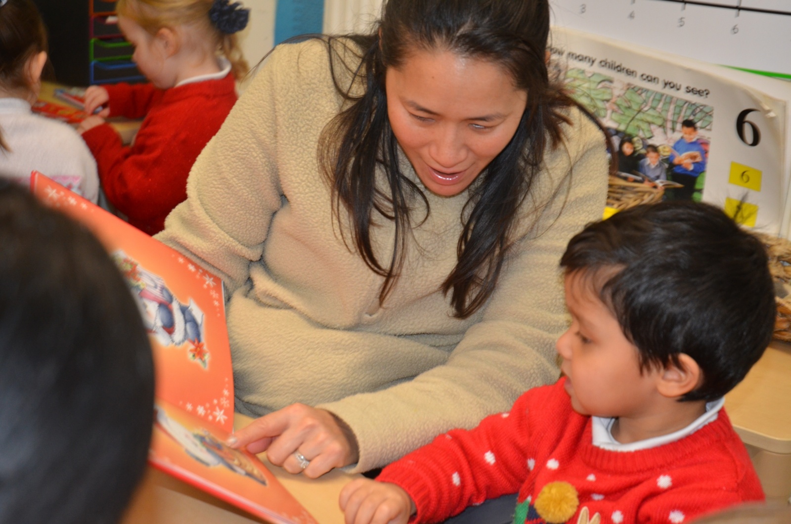 We wore our Christmas jumpers to Nursery and our families came to share Christmas stories with us.