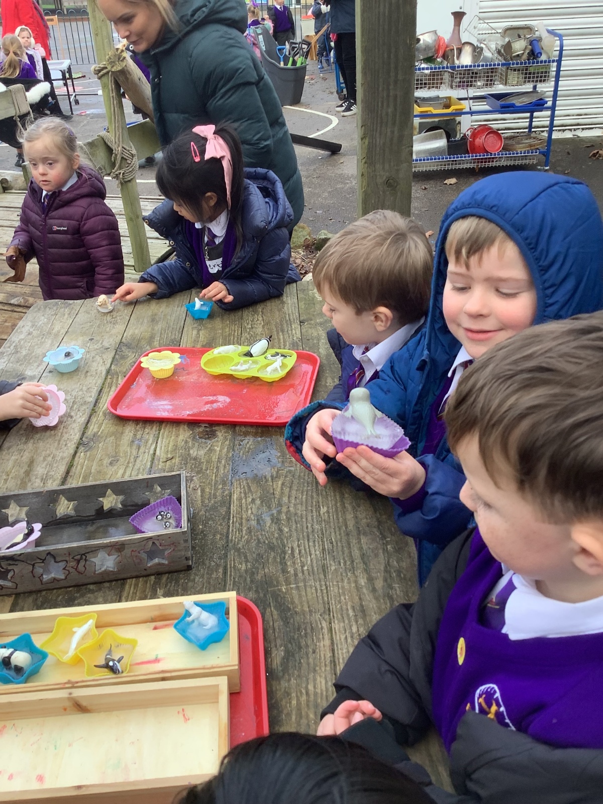 We loved being scientists, investigating how water freezes and ice melts...this led to the creation of our own ‘slip and slide’ polar playground!