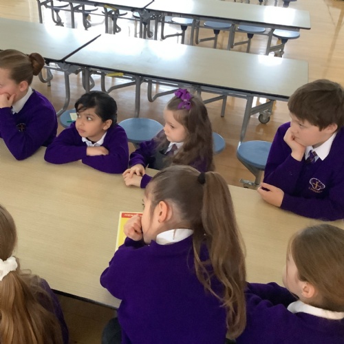The School Council met with Jacquie, our cook, to find out more about how the school meals are prepared and to discuss our favourite dishes. They discovered how Jacquie makes sure the meals are nutritious but also stay within a budget. Jacquie brought some lemon muffins and chocolate cookies for us to sample....we all agreed, they were DELICIOUS!